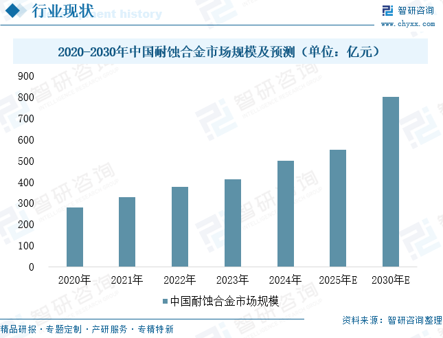 在国家高端制造业转型升级与新能源产业蓬勃发展的双重引擎驱动下,中国耐蚀合金行业已步入以技术创新为核心驱动力、应用场景持续纵深拓展的快速发展轨道。作为石油化工、海洋工程、航空航天等战略性产业的关键基础材料,行业在政策红利释放与下游市场需求激增的双重赋能下,2024年市场规模突破500亿元大关。近年来,以抚顺特钢为代表的国内领军企业通过工艺突破实现高端产品自主化生产,其独创的“30t非真空感应炉-炉外精炼-电渣重熔”一体化工艺,使N06625、N10276等高性能镍基合金生产成本下降超20%,成材率显著提升至81.94%。随着“十四五”规划对高端装备制造的持续加码,以及新能源、深海开发等新兴领域的爆发式增长,预计到2030年行业市场规模将突破800亿元,2024-2030年复合增长率保持8.5%左右,展现出强劲的发展韧性与增长潜力。