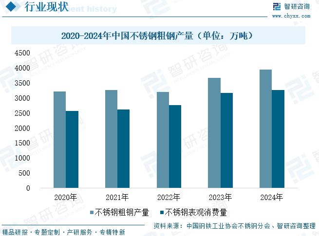 从材料体系划分,中国耐蚀合金市场已形成以铁基合金(不锈钢)、镍基合金、钛合金及铜镍合金为主导的多元化格局。其中,铁基合金凭借其规模化优势占据市场主导地位,不锈钢作为核心品类,不仅具备优异的耐腐蚀性、耐热性与低温韧性,更兼具良好的加工延展性,使其应用场景从民用领域的餐具、白色家电延伸至工业领域的化工装备、能源设施、交通轨道及航空航天关键部件。数据显示,2024年中国不锈钢产业延续增长态势,粗钢产量达3944.11万吨,同比增长7.54%;表观消费量突破3249.19万吨,增幅达4.54%。