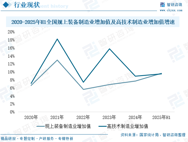 耐蚀合金作为高端金属材料,其发展与航空、航天、船舶、新能源等高端装备制造领域的需求深度绑定。随着我国民用高端装备产业集群崛起,特别是国务院将高端装备纳入国家战略布局后,智能制造、航空装备、轨道交通等细分领域加速形成创新生态,政策扶持与市场需求双轮驱动行业规模扩张。数据显示,2024年规上装备制造业增加值同比增长7.7%,对工业增长贡献率近半,高技术制造业占比持续提升;2025年上半年,装备与高技术制造业增加值占比分别达35.5%和16.4%,印证了高端装备产业向智能化、绿色化升级对耐蚀合金等关键材料的强劲需求,行业正步入技术迭代与市场扩容共振的高质量发展阶段。