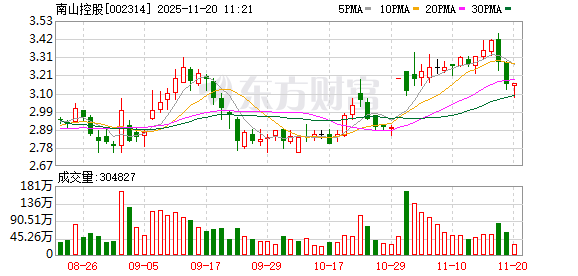 证券时报·数据宝统计,截至发稿,南山控股最新股价为3.08元,下跌2.22%,本期筹码集中以来股价累计下跌0.96%。具体到各交易日,8次上涨,4次下跌。