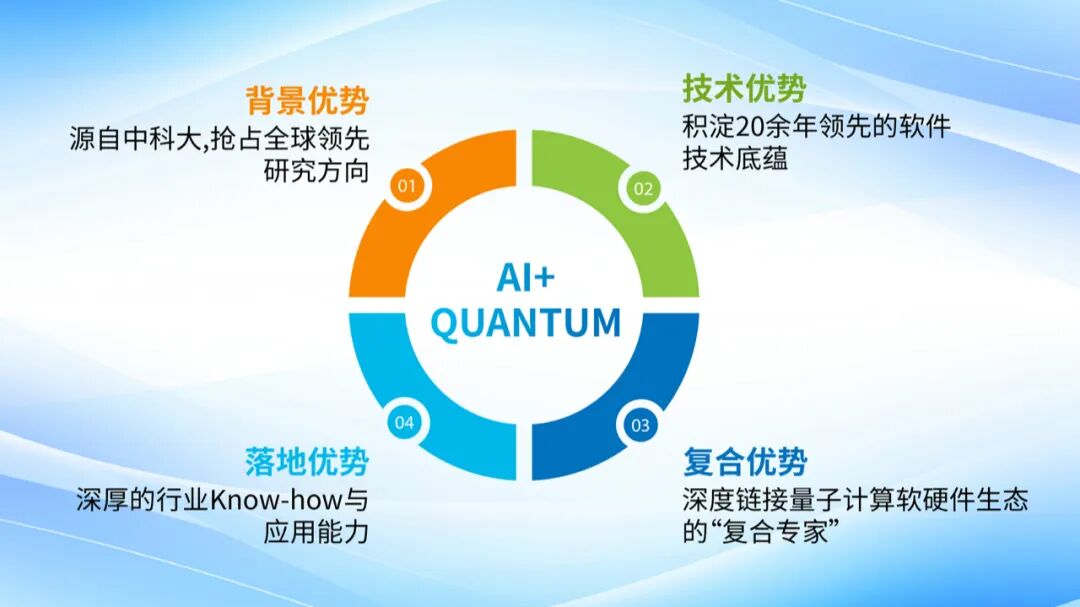 公司基于混合计算架构和智能平台,打通算法、业务和数据壁垒,积极探索从算法到应用的AI+量子创新平台,通过可量化的业务价值实现量子技术的产业化落地。