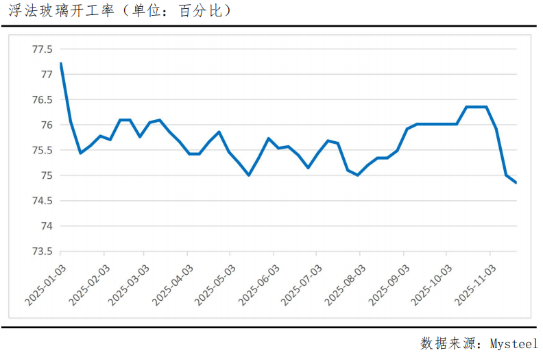 玻璃供应面也出现了一些积极因素,国内浮法玻璃开工率连续3周小幅下滑至74.85%,创年内新低,提振了短期市场信心。