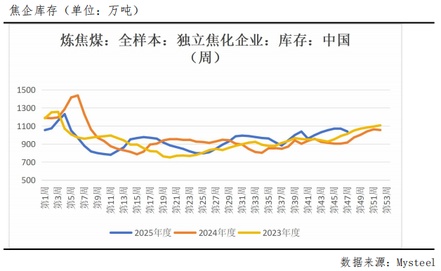 近期铁水产量整体呈缓步回落趋势,但在钢厂开工率仍维持相对高位的支撑下,炉料需求仍表现出一定韧性。据Mysteel最新统计数据显示,截至11月21日当周,铁水日均产量236.28万吨,环比减少0.6万吨,降幅0.25%,同比增加0.48万吨,增幅0.2%。尽管产量环比小幅下滑,但当前水平仍处于近年同期高位区间,刚需韧性叠加冬季供暖需求和冬储补库逐步启动或驱动焦煤价格反弹。