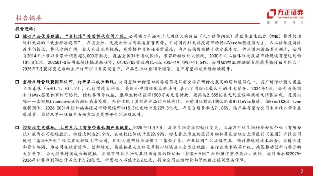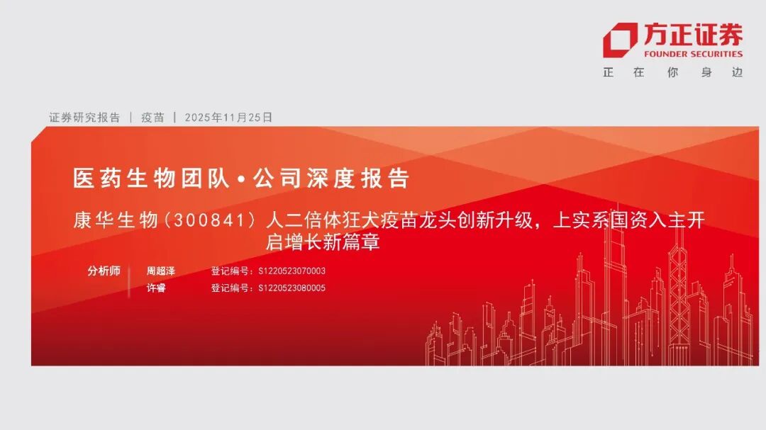本文来自方正证券研究所于2025年11月26日发布的报告《康华生物(维权)(300841):人二倍体狂犬疫苗龙头创新升级,上实系国资入主开启增长新篇章》,欲了解具体内容,请阅读报告原文。