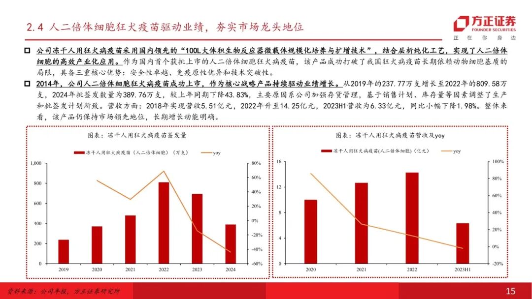 核心产品优势稳固,“金标准”疫苗替代空间广阔。公司核心产品冻干人用狂犬病疫苗(人二倍体细胞)是世界卫生组织(WHO)推荐的预防狂犬病的“黄金标准疫苗”,在安全性、免疫原性方面具备显著优势。