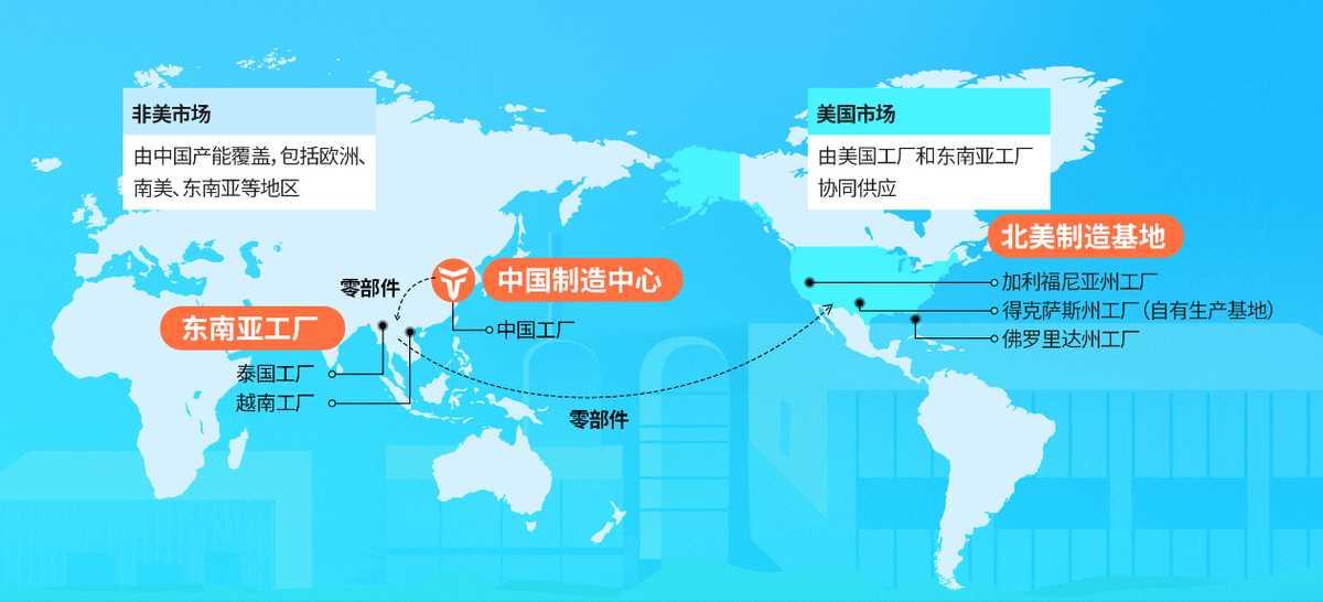 涛涛车业在北美市场的成功,不仅在于销售产品,更在于实现全价值链的本地化运营。公司不仅仅是把产品卖向全世界,已建立 “中国+东南亚+北美”三地产能布局。