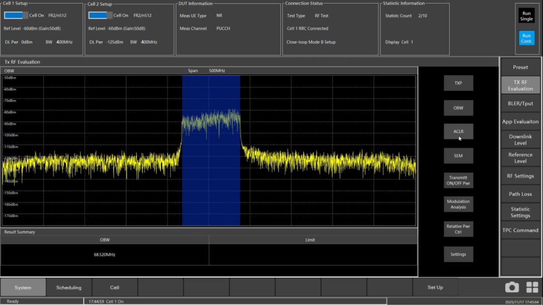 KSW-CTS03 不仅是一款独立测试平台,更能搭建完整的一致性测试系统。搭配公司自主研发的矢量信号发生器(KSW-VSG04)、频谱分析仪(KSW-VSA01)、射频切换箱(KSW-RFSB-CT)、无线信道仿真仪(KSW-WNS04)等高性能仪表,在脚本化自动测试管理软件(KSW-TestPlatform)的统一管控下,可实现终端入网流程、射频性能、协议一致性、业务功能等全维度自动化测试。