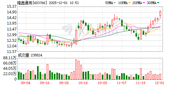 隆鑫通用股价创出历史新高,截至10:13,该股上涨3.62%,股价报14.89元,成交量1517.71万股,成交金额2.22亿元,换手率0.74%,该股最新A股总市值达305.77亿元,该股A股流通市值305.77亿元。