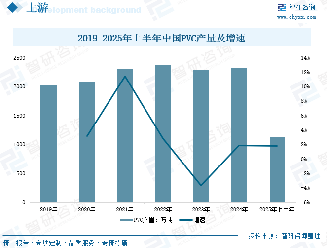 PVC是生产PVC泡沫的主要原材料,它提供了基本物理和化学性质,使得PVC泡沫综合机械性能优异,化学性质稳定,具有很高的性价比,在风电和水上船艇等领域有广泛应用。近年来,我国PVC产量整体呈现上升态势,2025年上半年中国PVC产量达到120万吨,同比增长1.8%。这主要受国内产能扩张导致,上半年新浦化学的50万吨PVC装置顺利投产,陕西金泰的无汞工艺60万吨装置也实现满产,使得国内PVC产量上升。预计2025年下半年PVC产能释放更为集中,PVC产量有望持续上涨。这意味着可生产PVC泡沫的原材料逐渐增加,进而为风电叶片芯材行业发展奠定重要基础。