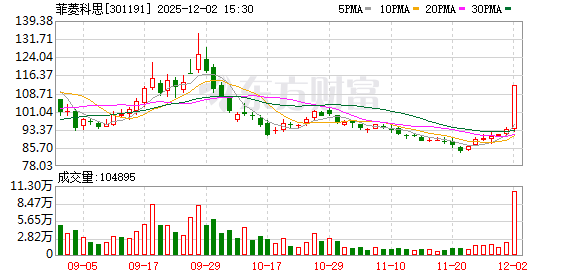 12月2日,菲菱科思(301191)发布公告,截至2025年11月30日,公司通过集中竞价交易方式累计回购45万股,占总股本的0.66%,回购总金额为3438万元,最高成交价为79.99元/股,最低成交价为74.03元/股。