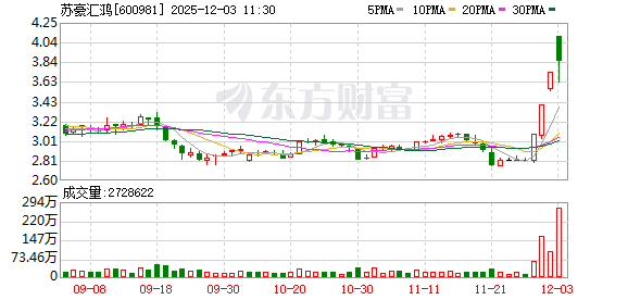 数据宝统计,截至10:42,苏豪汇鸿成交额10.07亿元,创2007年8月2日以来新高。最新股价上涨3.75%,换手率11.40%。上一交易日该股全天成交额为3.82亿元。