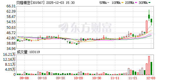 贝隆精密今日下跌4.72%,全天换手率48.55%,成交额5.56亿元,振幅9.44%。龙虎榜数据显示,机构净买入1137.13万元,营业部席位合计净卖出2887.99万元。