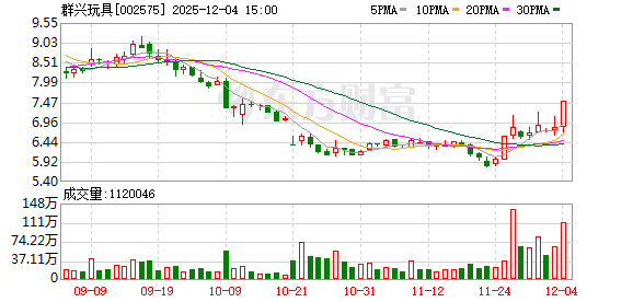 群兴玩具今日涨停,全天换手率19.17%,成交额8.03亿元,振幅12.59%。龙虎榜数据显示,机构净卖出770.08万元,深股通净买入1664.51万元,营业部席位合计净买入3396.89万元。