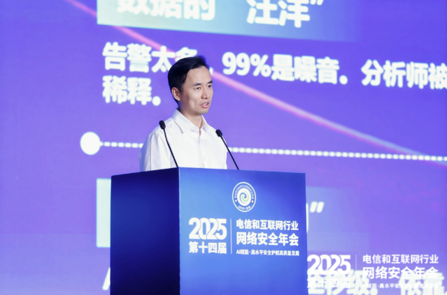 近日,以“AI赋能·高水平安全护航高质量发展”为主题的2025第十四届电信和互联网行业网络安全年会在京隆重举行。工业和信息化部原总工程师、工业和信息化部信息通信科技委常务副主任兼秘书长韩夏,工业和信息化部网络安全管理局局长隋静,中国通信企业协会会长郭浩,中国信息通信研究院院长余晓晖出席会议并致辞,中国通信企业协会通信网络安全专业委员会主任、中国信息通信研究院副院长魏亮出席会议并作主旨报告。奇安信集团受邀出席,参与开幕式、主题演讲、成果展览等。奇安信集团产品总体部总经理邬怡作“从数据到智能决策——AI在安全业务中的实战闭环”主题演讲,深入剖析了AI技术在网络安全领域的创新应用与实战价值,为行业转型提供了前瞻性思路。