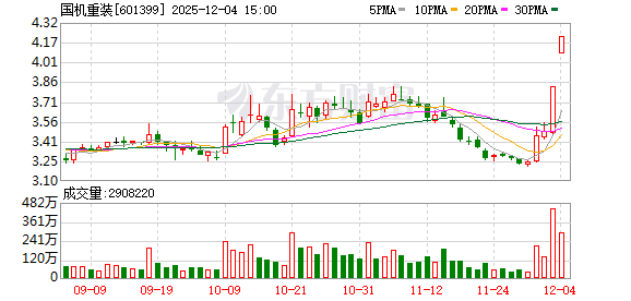 国机重装12月4日大宗交易平台出现一笔成交,成交量2000.00万股,成交金额8280.00万元,大宗交易成交价为4.14元,相对今日收盘价折价1.66%。该笔交易的买方营业部为中信证券股份有限公司总部(非营业场所),卖方营业部为国新证券股份有限公司北京朝外大街证券营业部。