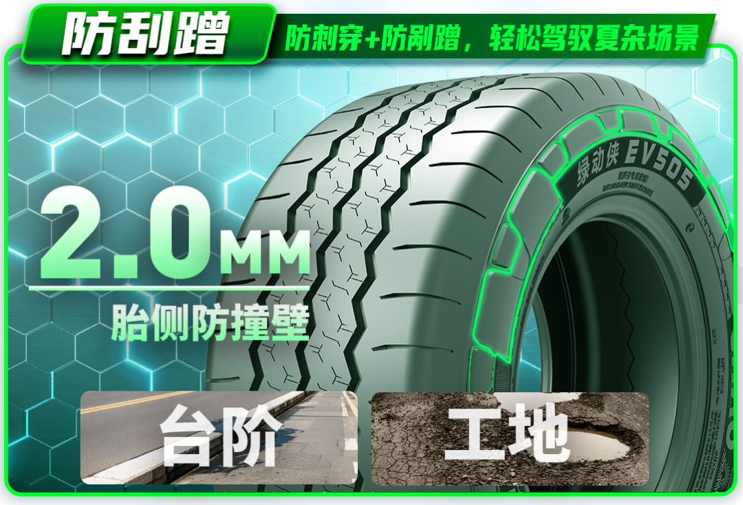 基于此,中策橡胶历时多年研发,推出了VAN卡专用轮胎——绿动侠EV505。