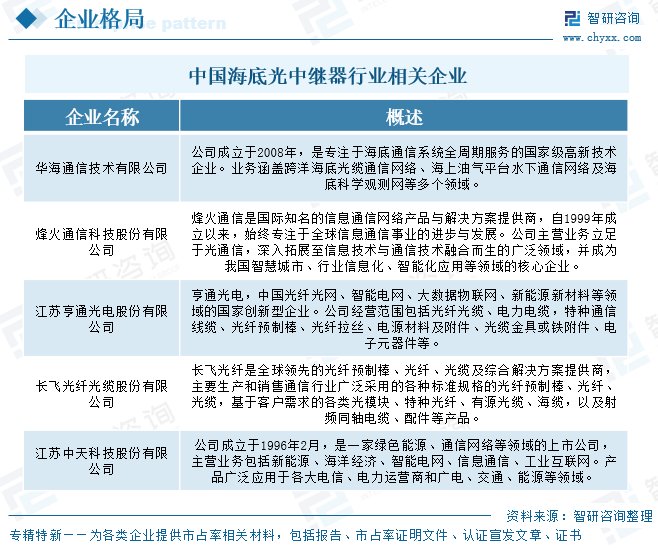 海底光中继器行业竞争格局