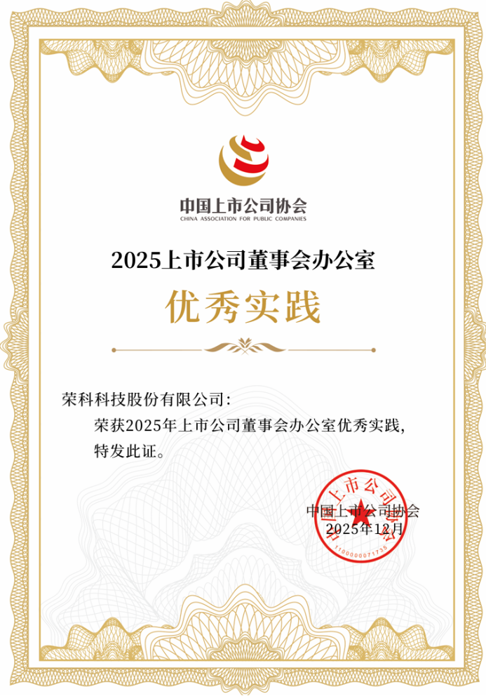 近日,由中国上市公司协会组织的“2025上市公司董事会办公室最佳实践案例”评选结果正式揭晓。经过严格审查,荣科科技股份有限公司(以下简称“荣科科技”)凭借其在公司治理、信息披露、投资者关系管理等领域的规范、高效运作,成功入选“2025上市公司董事会办公室优秀实践”。