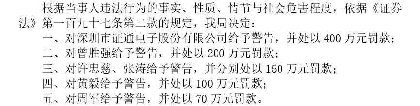 据此,证监会决定对证通电子及相关责任人员给予警告并处以罚款。