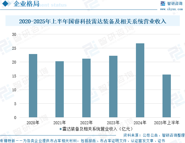 国睿科技股份有限公司雷达及系统产品谱系丰富、技术先进,覆盖国际化经营、军工电子、公共气象、应急管理、交通、水利、电力等多个领域,为国内外用户提供全谱系预警探测装备,为气象、空管、应急管理等部门以及新能源电力、水利、交通运输等国民经济行业,提供从气象探测装备到大数据处理应用的整体解决方案。公司延承我国雷达工业血脉,主动承担“中国雷达走向世界”的重任,积极响应“一带一路”倡议,与合作伙伴建立了长期业务关系。推动技术创新,开展科技攻关,攻克大型相控阵天气雷达技术,完成X波段相控阵测雨雷达及应用系统的研制,持续引领气象雷达技术的发展;基于物联网、人工智能与大数据分析等技术,率先谋划“雷达+系统”整体解决方案布局,为气象防灾减灾提供有力支撑;在二次雷达S模式协同监视与数据链、雷达信号处理、大数据挖掘等多个领域持续开展技术攻关,确保在空管雷达装备与系统领域保持技术领先优势。据统计,2025年上半年,国睿科技雷达装备及相关系统营业收入为15.5亿元,同比增长16.54%。