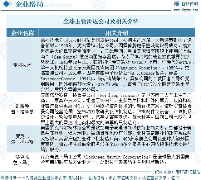 目前,全球雷达市场集中度极高,这主要源于产品研发周期长、技术积累深、系统复杂度高及政府主导等因素。为共担研发风险并共享采购订单,主要厂商常通过成立联合公司或合作研发实现强强联合,当前全球领先企业包括雷神技术、诺斯罗普·格鲁曼、罗克韦尔柯林斯及洛克希德马丁等。全球雷达市场需求主要受国防预算与雷达技术发展两大因素影响:政府国防开支的波动直接影响采购规模,而技术迭代推动产品升级进而引发需求结构变化。2024年全球军用雷达市场规模约达460.7亿美元,整体在波动中保持增长,北美和亚洲地区占据主导地位,尤其亚太地区因局势变化促使各国加大海空军备投入,进一步拉动军用空管雷达需求。与此同时,雷达技术逐渐从军用向民用领域渗透,美国雷神技术、法国THALES、日本古野、日本JRC、英国雷松、英国凯文休斯等公司已重点布局民用市场。近年来,民用雷达的应用越发广泛。各种新型民用雷达产品层出不穷,如气象雷达、雷达感应灯、雷达生理感测技术等,不断改变着人们日常生产生活。随着全球航空线路扩展和低空经济快速发展,机场及空管系统对雷达的需求持续上升,民用空管雷达因在航空管制、低空监测等方面的关键作用,预计将迎来迅猛增长。