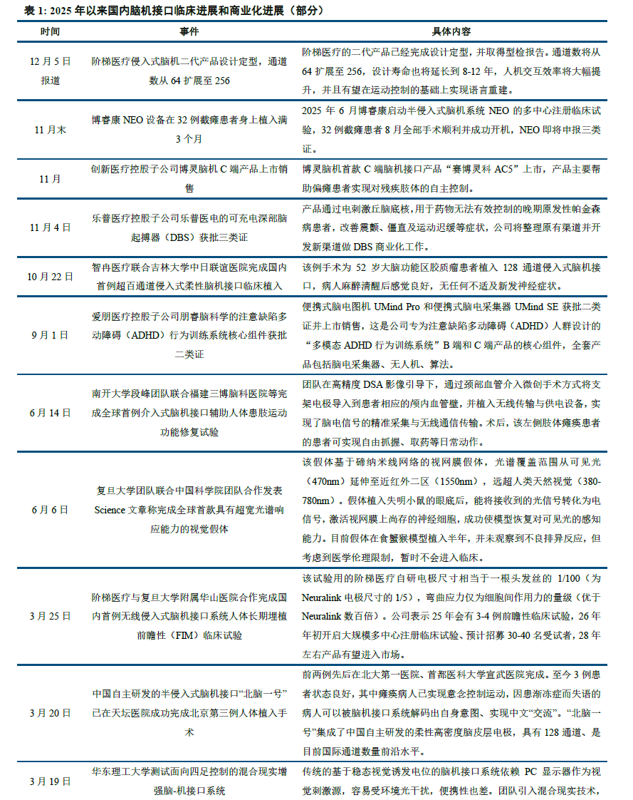 证券研究报告名称:《国内首款脑机接口半侵入式产品将提交注册,脑机临床和商业化进展加速》