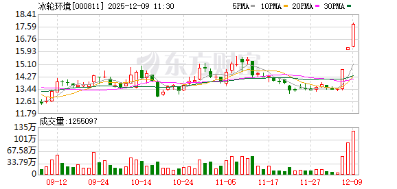 冰轮环境盘中涨停,已连收3个涨停板,截至10:31,该股报17.82元,换手率10.89%,成交量1.07亿股,成交金额18.34亿元,连续涨停期间,该股累计上涨33.08%,累计换手率为25.77%。最新A股总市值达176.86亿元,A股流通市值174.35亿元。