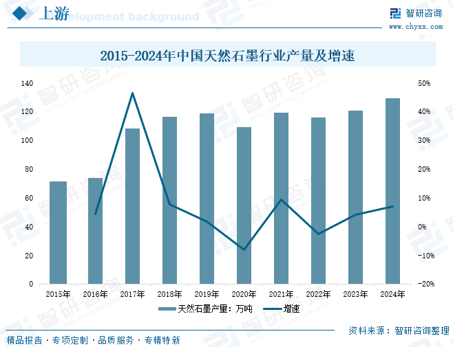 近年来,随着技术的进步,石墨已成为新能源汽车、石墨烯等新能源、新材料领域的关键原材料,受到了各个行业、国家的重视,已成为当前及未来新兴产业领域的重要材料来源,成为多个国家的战略性矿产资源。我国一直是全球第一大石墨生产国,在全球供应市场上具有重要的地位。数据显示,2015-2024年中国天然石墨行业产量从70.8万吨增长至129.16万吨,年复合增长率为6.91%。随着天然石墨产量的持续增长,石墨热敏纸的原材料供应得到保障,这将进一步推动石墨热敏纸行业产量提高。