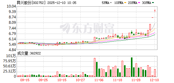 昇兴股份盘中涨停,已连收4个涨停板,截至9:25,该股报9.57元,换手率0.93%,成交量908.28万股,成交金额8692.24万元,连续涨停期间,该股累计上涨46.33%,累计换手率为12.14%。最新A股总市值达93.49亿元,A股流通市值93.48亿元。