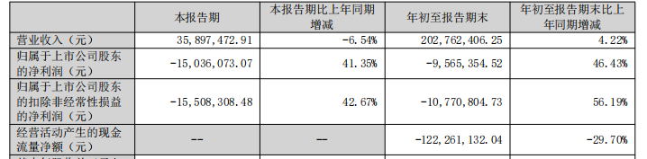 中国经济网北京12月12日讯佳缘科技(301117.SZ)2025年三季度报告显示,2025年前三季,公司实现营业收入2.03亿元,同比增长4.22%;归属于上市公司股东的净利润-956.54万元,同比增长46.43%;归属于上市公司股东的扣除非经常性损益的净利润-1077.08万元,同比增长56.19%;经营活动产生的现金流量净额-1.22亿元,同比下降29.70%。