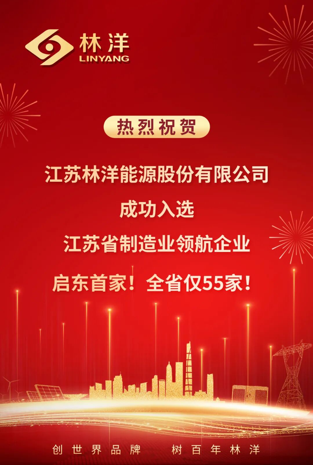 近日,江苏省工业和信息化厅正式公示第二批省级制造业领航企业名单。林洋能源凭借在智慧能源领域的卓越表现和行业引领能力成功入选,是本次全省55家获评企业之一,亦是启东市首家获此省级殊荣的企业。