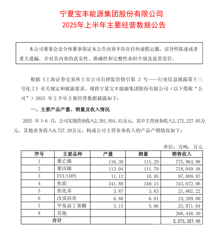 宝丰能源2025年上半年财报显示,公司累计销售聚乙烯、聚丙烯产品227.08万吨,实现营收149.4亿元。简单计算可得,其烯烃产品平均单价约为6579.18元/吨。财报同时披露,公司煤制烯烃板块的毛利率高达42.84%。