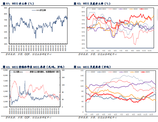 MEG:价格有所下跌。目前MEG现货周均价格在3654.29(-185.00)元/吨,华东罐区库存为75.50(+3.60)万吨,开工率69.93%(-2.90pct)。