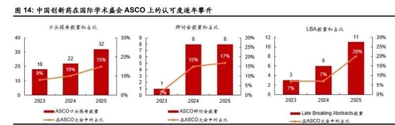 中国创新药出海爆发主要得益于中国创新药研发的高效和低成本优势,以及逐渐提升的创 新药研发质量。据麦肯锡的统计,在确定靶点到申请 IND 的药物发现阶段,中国 创新药企可以比国际同行快2~3倍的速度推进,在fast-follow型小分子药物上甚至可以实现 50%~70%的复合加速,成本仅为全球最佳实践的 1/3~1/2。此外,在临床开发阶段,中国 创新药企相较于国际同行,可以以 2~5 倍的速度招募患者,代谢适应症临床实验中甚至可 以达到全球平均水平的 8.9 倍;每位患者的成本不及欧美的 1/2。中国所特有的庞大的人口 基数、数量众多的临床研究中心、充足的人才供应,以及一站式规模化的 CRO/CDMO 生 态系统,为中国创新药研发的加速度和低成本优势提供了基础。中国创新药的研发亦获得 越来越多的国际认可,例如,中国创新药企在全球肿瘤学领域大会 ASCO 的口头汇报、 LBA 汇报和研讨会的数量亦在逐年增加。我们持续看好中国创新药的长远发展。