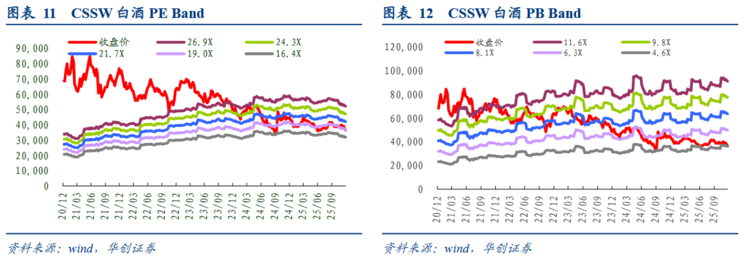 26年增长驱动:产品组合牌正在反噬,新渠道开发或是底牌。前期白酒景气上行阶段,茅台加大尊品、珍品、生肖、文创等产品组合牌提升品牌溢价,但基于当前行业处承压期,此类产品组合牌价格倒挂亦侵蚀渠道根基,加重经销商经营压力。公司或通过控量高附加值产品以实现价格抬升,而精品市场覆盖面较广,在2000元+价格带可以实现快速放量,确保经销商利润空间并缓解资金压力。同时参考上轮13年茅台开启招商,明年或考虑飞天适度放开招商引入新鲜血液活跃经销体系,激发渠道能动性。