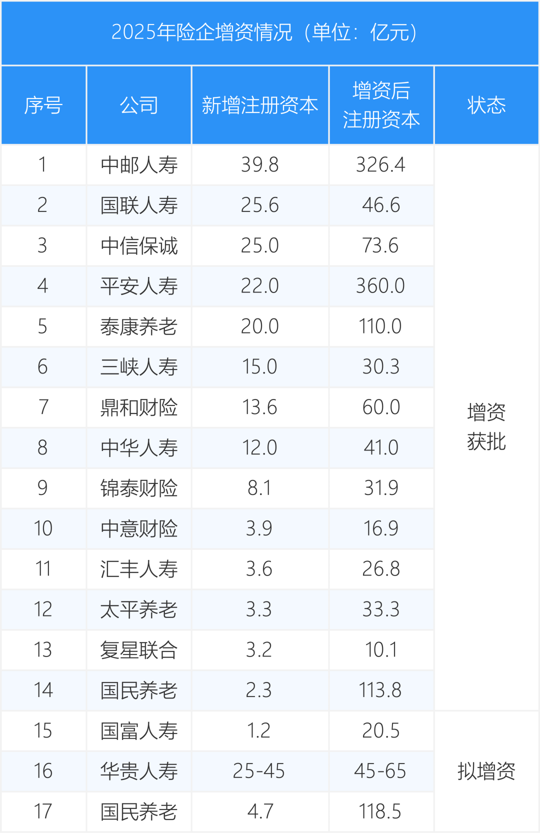 2025年险企增资情况