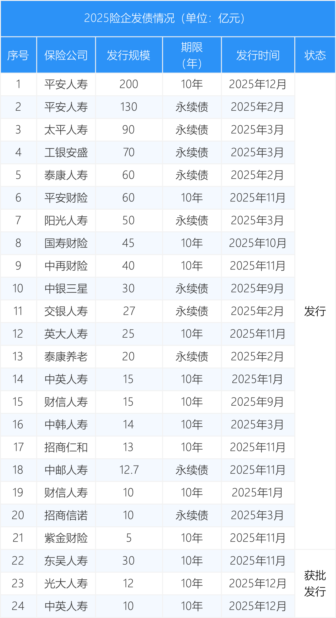 2025年险企发债情况
