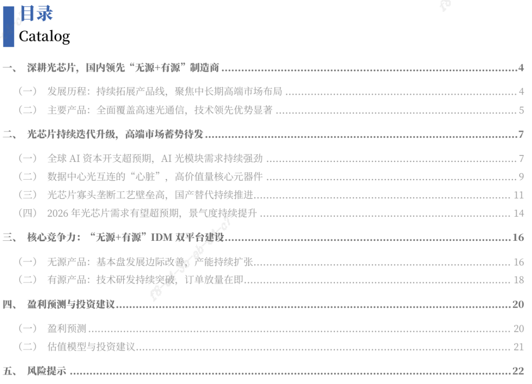 一、深耕光芯片,国内领先“无源+有源”制造商