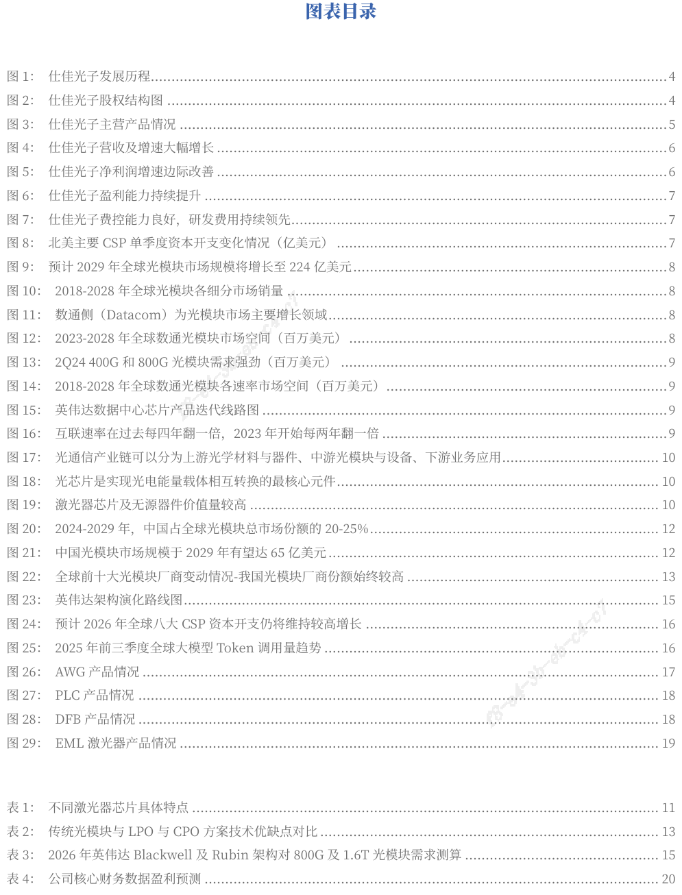 我们认为光模块上游国产化进程有望进一步加速。我们认为随着GPU国产化要求的进一步提升,耗电量提升或将成为未来一段时间的主要问题,虽然我国电力基础设施较为完备,但随着GPU用量的增加,对于PUE的控制以及能耗的降低将成为2026年的主要方向,当前我国液冷算力中心的普及率依旧较低,但液冷尤其是冷板式液冷技术成熟度较高,具备规模化普及潜力;同时,我们认为在当前光模块上游高价质量CW光源/AWG/光芯片/偏光片等部件供给紧缺的背景下,仕佳光子具备较强的渠道以及快速响应优势,有望实现业绩的快速增长。