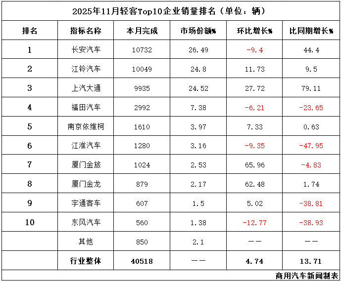 整体来看,轻客市场11月可以说是接过了“金九银十”的接力棒,销量稳步增长,表现出色。如今,2025年还剩最后一个月,按照各厂商年底销量冲刺的惯例,12月的销量表现大概率不会差,究竟轻客市场会以怎样的成绩收官2025?商用汽车新闻传媒将持续关注,并为大家带来最新的产销数据分析报道。