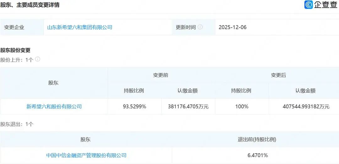 我们先看退出的案例。中信金融资产在今年三月入股山东六和,持股仅6.47%,但不到九个月便全部退出,由新希望集团全数接回。中信金融资产的主要业务是金融资产管理和处置,其投资行为往往带有鲜明的财务属性,追求的是在相对短的时间内实现资金的安全与增值。当投资标的山东六和近期进行一系列资产调整,收缩部分传统养殖和机械业务,同时尝试向生物科技领域拓展时,这种转型的不确定性和较长的培育期,可能不符合财务投资者“短平快”的偏好。因此,选择在此时退出,是完成阶段性任务后基于自身投资纪律和风险偏好的正常决策,并不意味着对农业或养猪行业前景的否定。