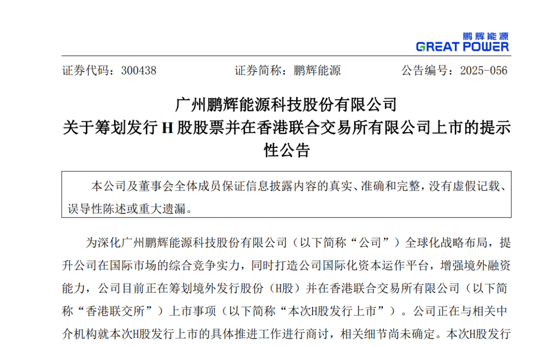 在新能源产业成为全球竞争焦点的今天,鹏辉能源即将开启的港股之旅,既是为了构筑国际化的资本平台,更是为其在全球储能市场的激烈竞争中,储备足够的“粮草”。