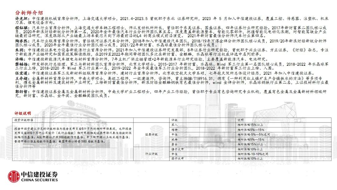 许琳:中信建投新能源汽车锂电与材料首席分析师,7年主机厂供应链管理+2年新能源车行业研究经验,主要覆盖新能源汽车、电池研究。