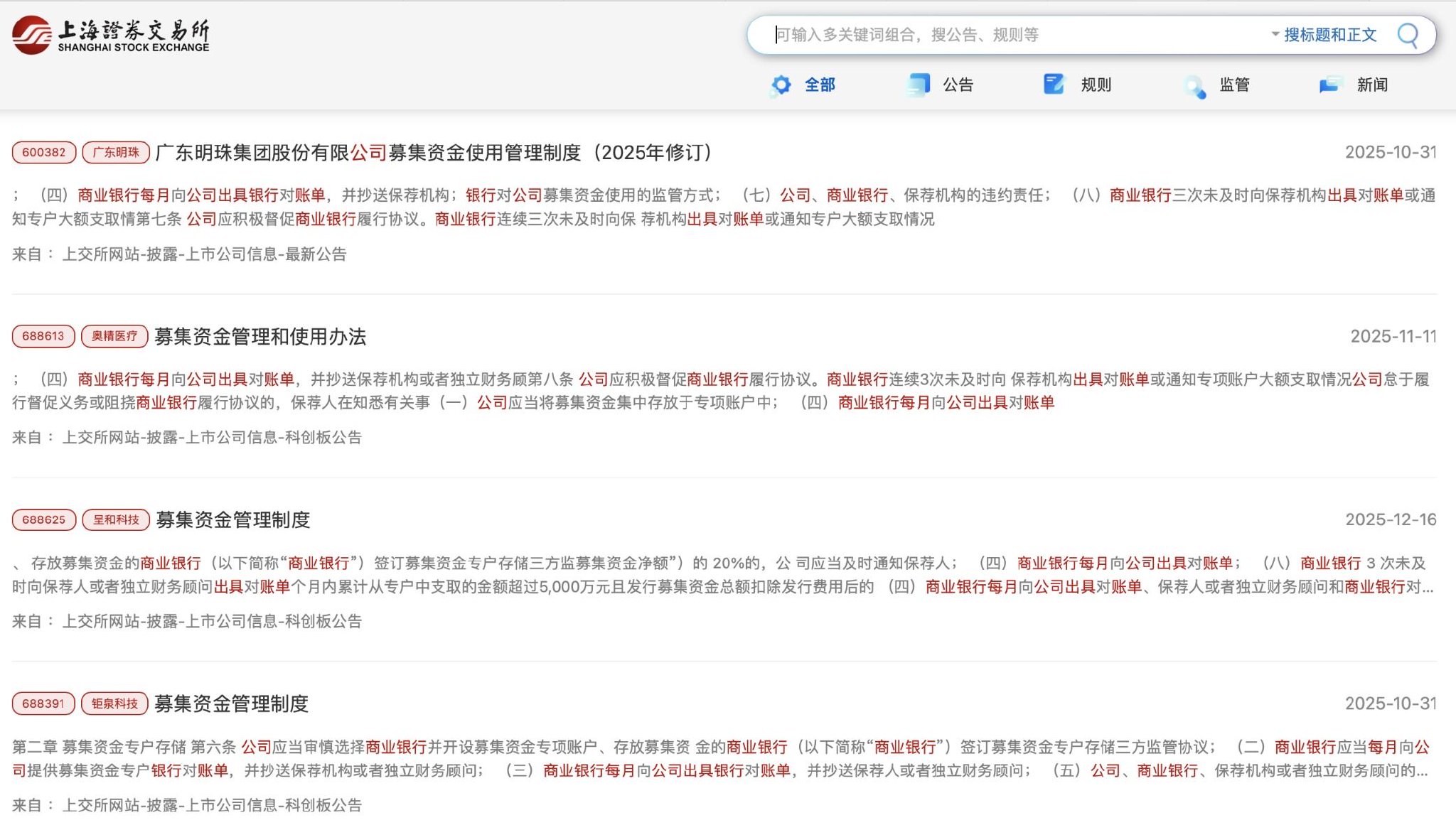 《科创板日报》记者查询上交所与深交所官网发现,上市公司至今仍在各家公司制定的募集资金管理制度/办法中提及该点。