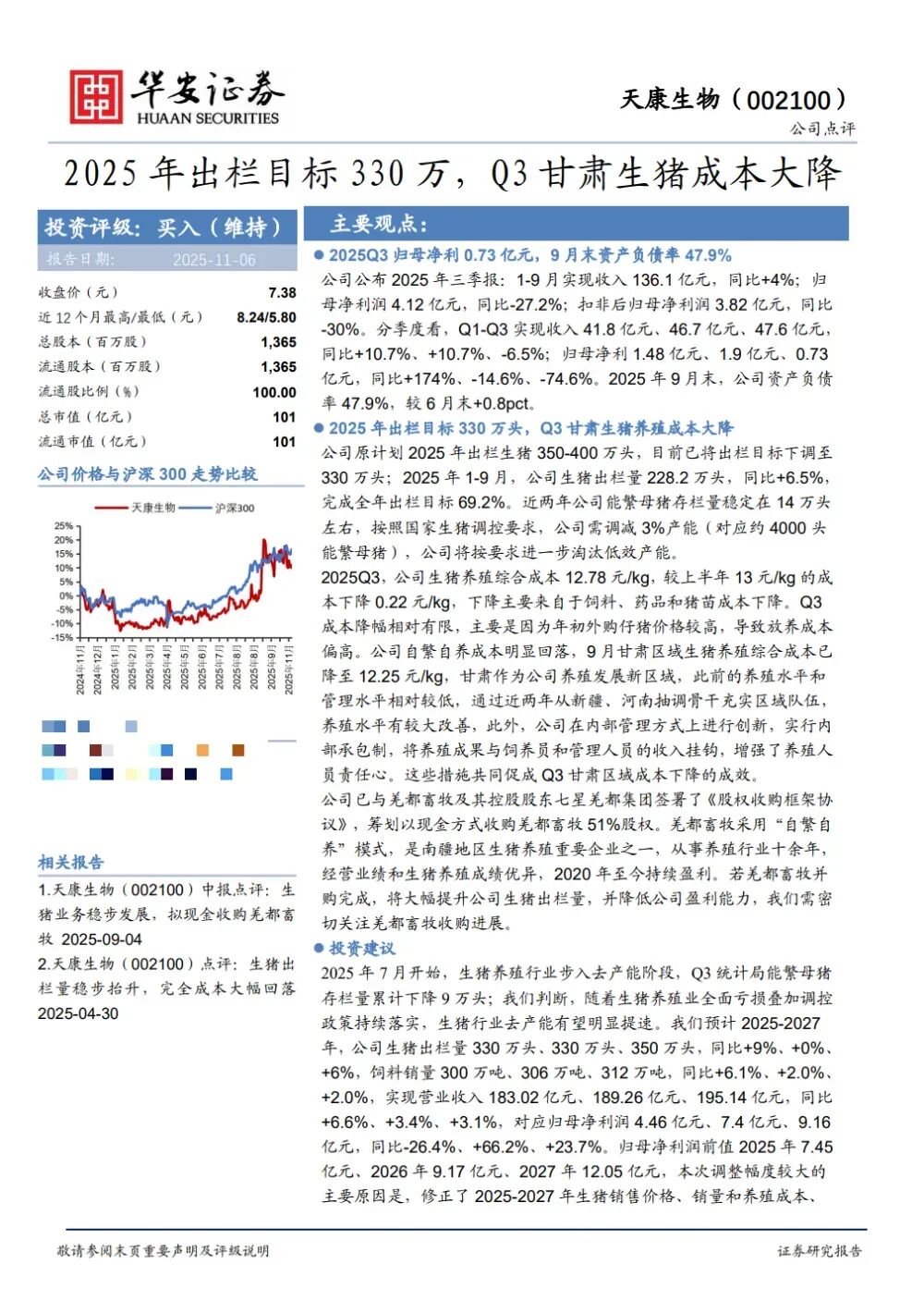 意义:此次收购为存量资产整合,可快速获取成熟产能与渠道,助力公司实现500万头出栏目标,并显著提升营收与利润。预计2026年1-2月并表。