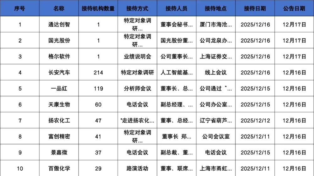 重点机构:景顺长城基金、兴证全球基金、嘉实基金、泓德基金、高毅资管、华夏基金