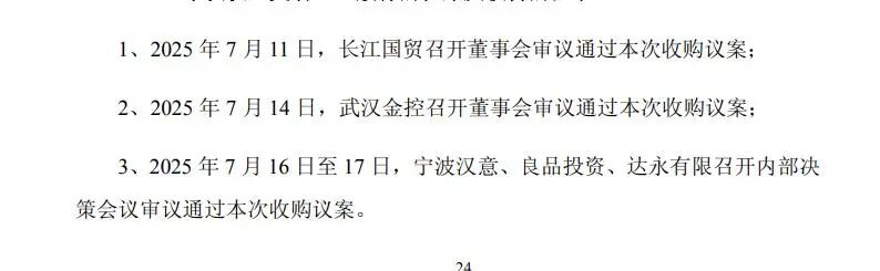 据相关公告,宁波汉意与长江国贸的接洽要晚于广州轻工2个月左右,7月11日,长江国贸才召开董事会审议通过本次收购案,7月14日,长江国贸上级单位武汉金控召开董事会审议通过本次收购议案,也就是在同一天,广州轻工正式向宁波汉意发起诉讼。