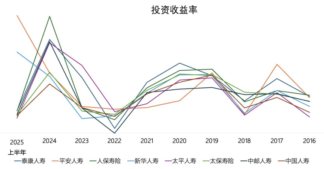 注:2014-2021年为推算的「实际投资收益率」,2022-2025年为「综合投资收益率」,2025年为上半年综合投资收益率