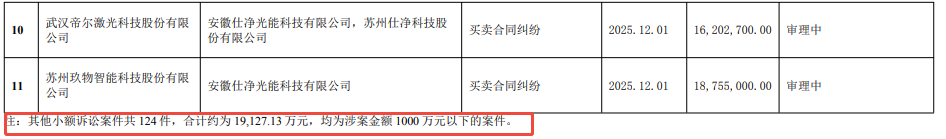 在8月的公告中,仕净科技披露的大额纠纷仅有2起: