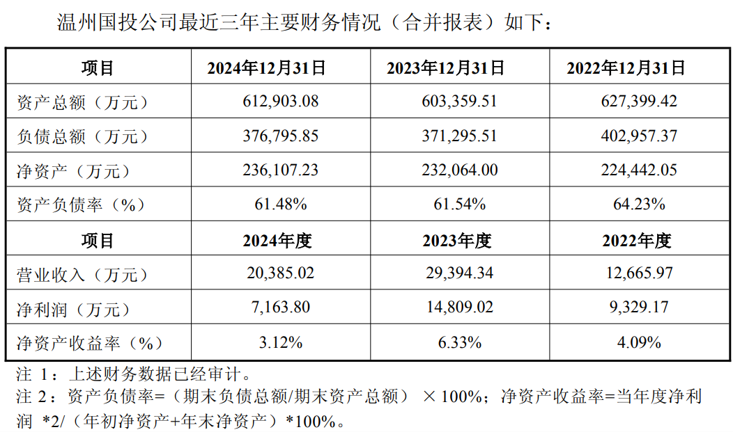 根据收购报告披露的财务数据,温州国投公司2024年资产总额达612903.08万元,净利润为7163.80万元。公司旗下控制着包括温州现代集团在内的9家一级子公司。